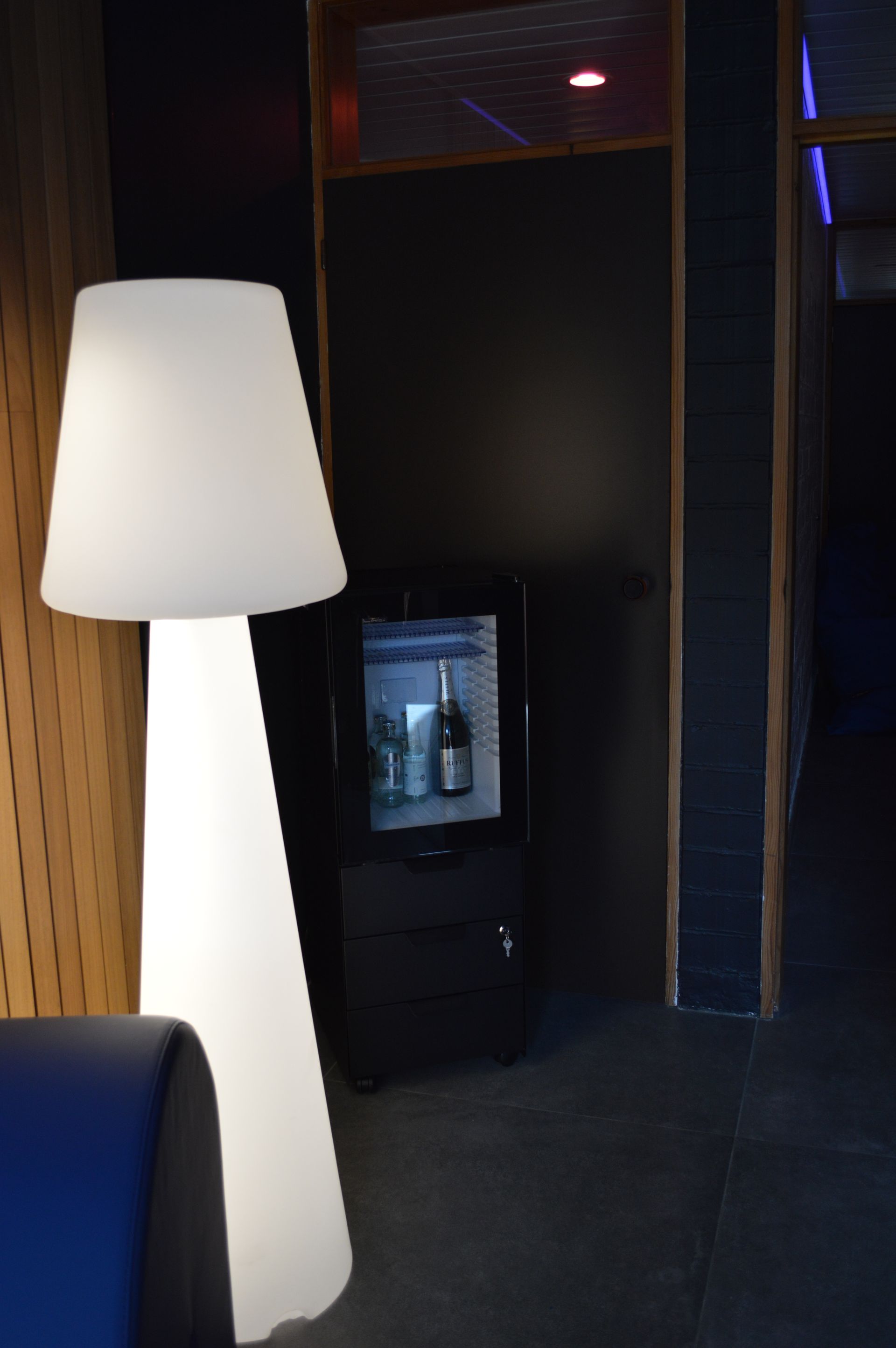 Entre chaque voyage sensoriel, ou à la fin de ceux-ci, profitez de cet espace cosy équipé de fauteuils de relaxation et d’un écran de projection
